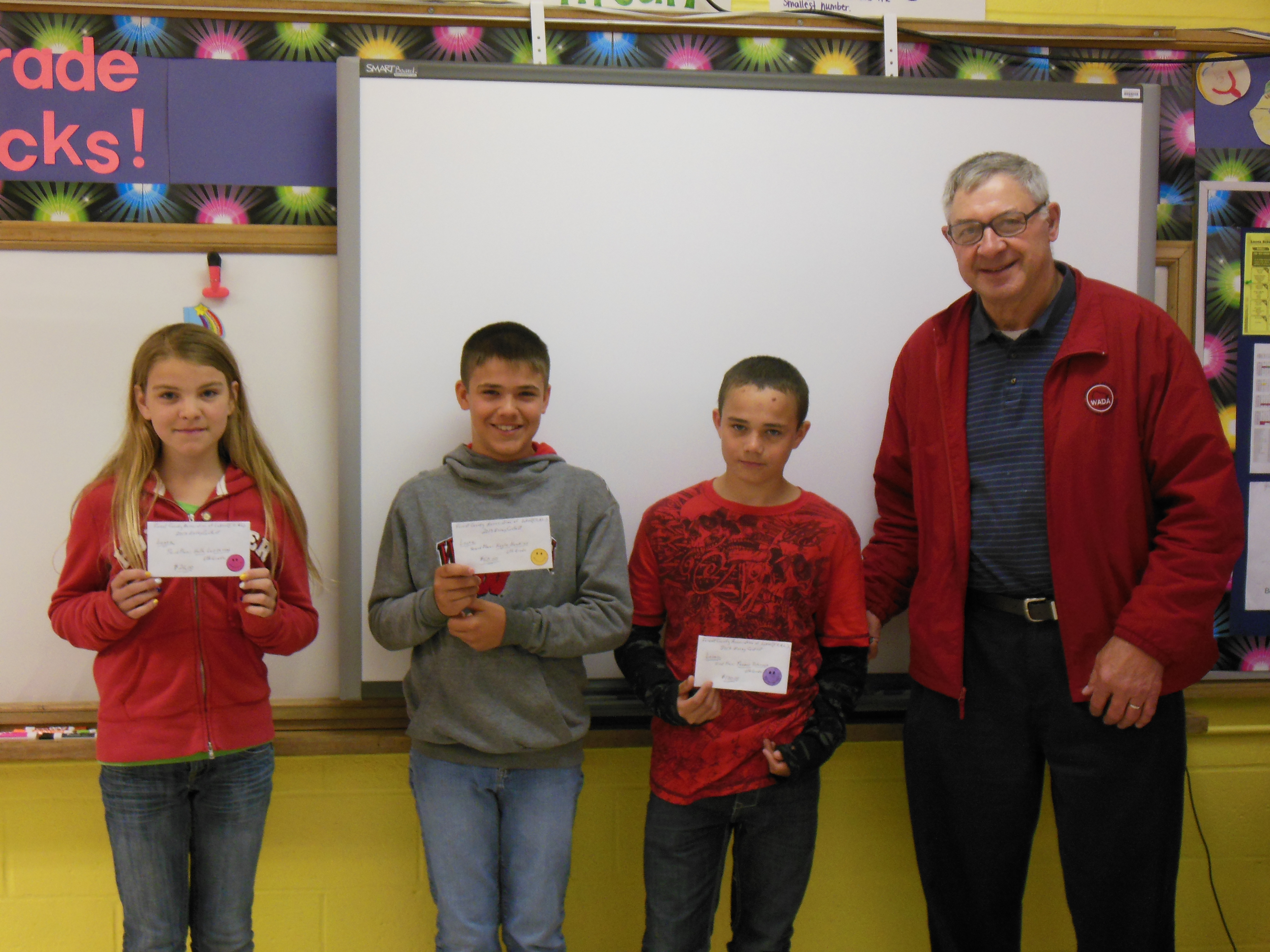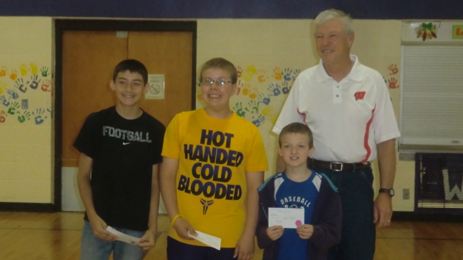 - FCAL Board Member and Essay Contest Chairperson Harry Resch presented awards to Laona Elementary Students, From left to right: 3rd place winner – Halle Lazzeroni, 2nd place winner – Kayin Hawkins and 1st place winner – Tanner Peterson.