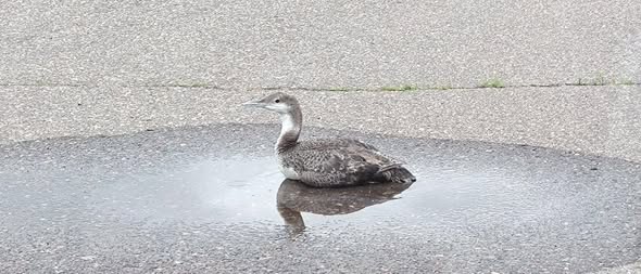 Loons also mistake wet and dark surfaces such as blacktop roads and parking lots for open water. Once they land on these hard surfaces, they are stranded and possibly injured.