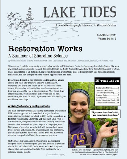 For half a century, Lake Tides has been more than just a newsletter—it has been a bridge between science, policy, and the people who love Wisconsin’s lakes. Published by the University of Wisconsin–Stevens Point’s Extension Lakes program, this quarterly publication has become a trusted source for lake enthusiasts, waterfront property owners, conservationists, and anyone curious about the health and future of the state’s waters. When Lake Tides first appeared in the mid 1970’s, its mission was simple yet ambitious. Their mission is to educate the public about lake ecology and management, share success stories from communities working to protect their waters, and connect citizens, scientists, and policymakers in a shared conversation about stewardship. Over the decades, the newsletter has covered everything from invasive species threats to shoreline restoration projects, from legislative updates to profiles of local lake associations. Its pages have reflected the evolving challenges facing Wisconsin’s 15,000 lakes and the creative, community driven solutions that emerge in response. What makes the Lake Tides newsletter unique is that it is science made accessible, it’s a statewide perspective, and it’s a platform for collaboration. One recurring theme is that while the threats to lakes such as climate change, nutrient runoff, and invasive species have grown more complex, so too has the network of people committed to addressing them. Lake Tides has been a constant thread in that network, weaving together stories of resilience and innovation. Anyone can subscribe to Lake Tides, it’s free and available both in print and online. You can find it online by searching “UWEX Lake Tides.” Readers are encouraged to share their own lake stories, volunteer for monitoring programs, or attend events like the Wisconsin Lakes & Rivers Convention, where the newsletter’s community often gathers in person. In the end, Lake Tides is more than a publication, it’s a living record of Wisconsin’s relationship with its lakes. It reminds us that stewardship is not a solitary act but a shared journey, one that spans generations and shorelines.