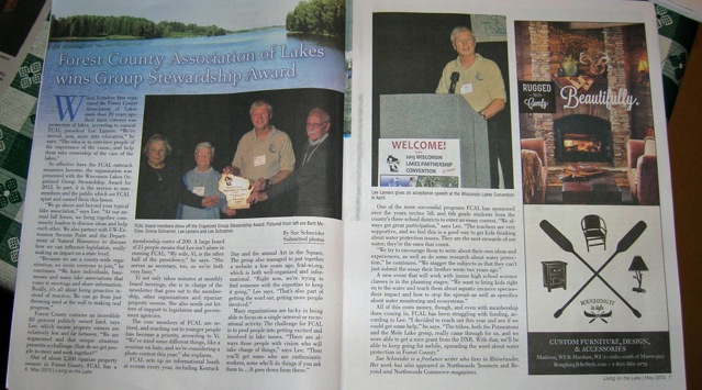 - Article in Living on the Lakes magazine entitled “Forest County Association of Lakes Wins Group Stewardship Award